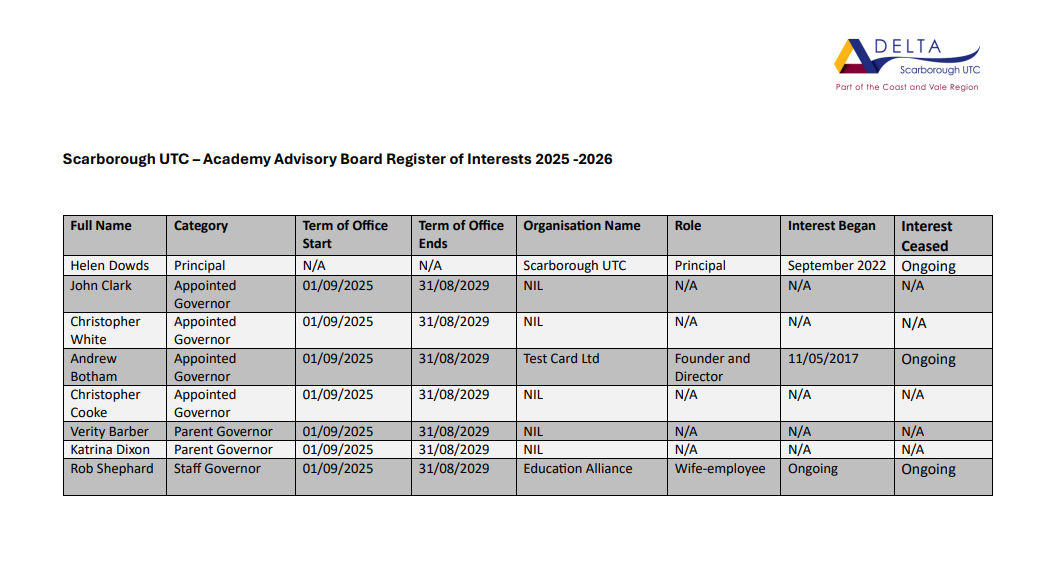 Contact address: Scarborough UTC, 1 Ashburn Road, YO11 2JW.