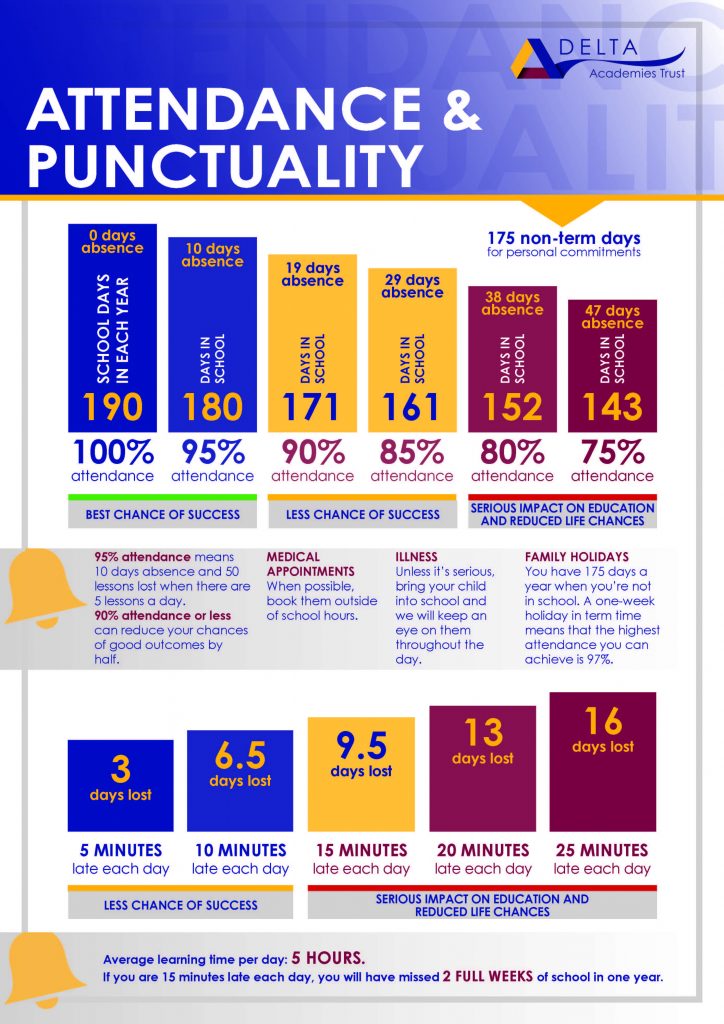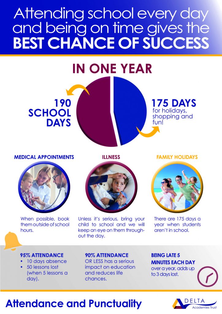 Research suggests that just 17 days absence from the academy equates to a whole GCSE grade lower than a student with full attendance.